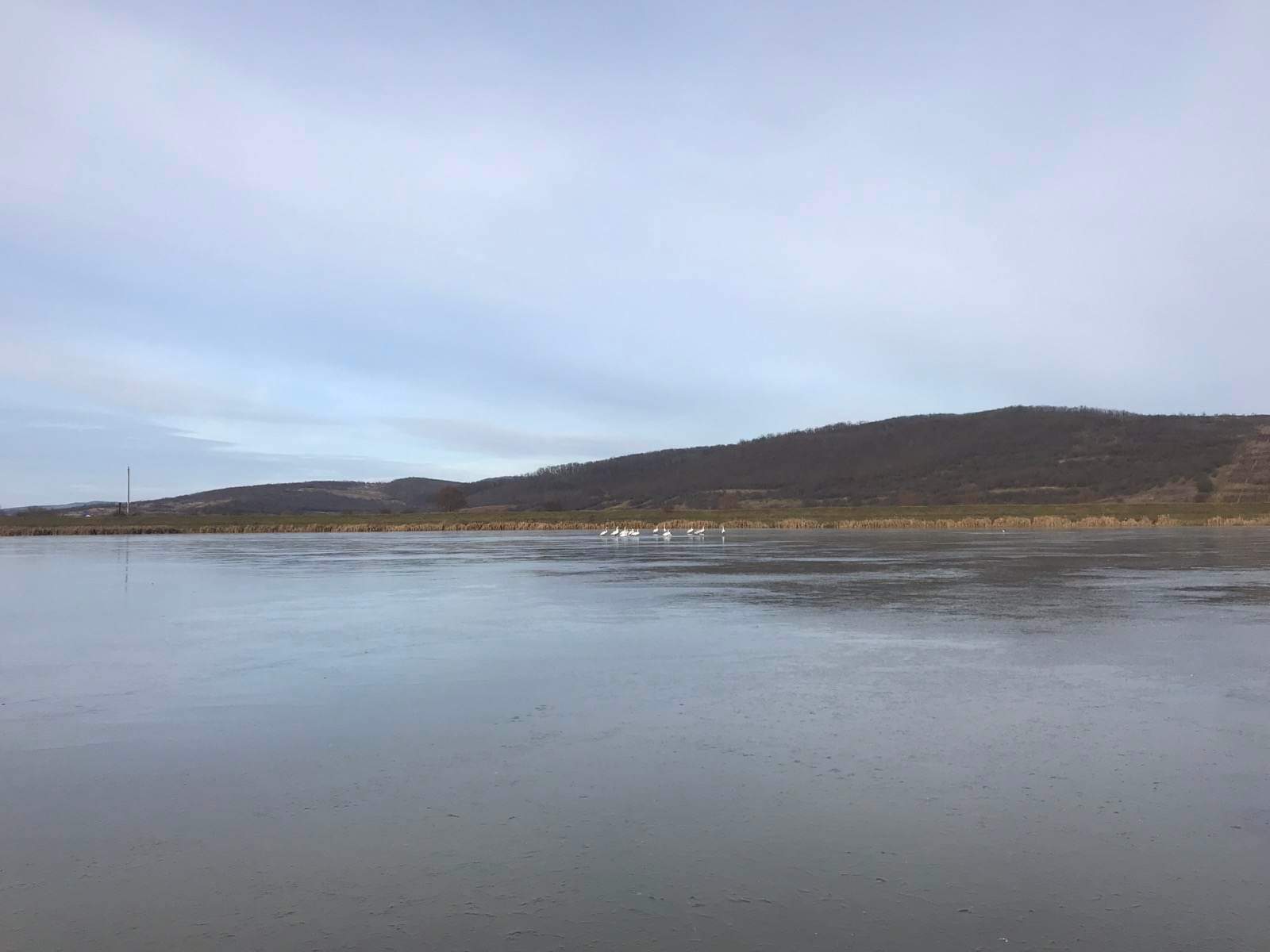 FOTO/ Circa de 30 de lebede captive într-un lac înghețat din satul Răciula și-au recăpătat zborul cu ajutorul pompierilor
