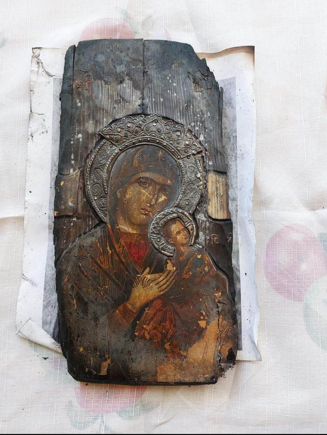 Emilia Bălan este convinsă că (,) credincioșilor le-a purtat de grijă o icoană micuță, cu chipul a Maicii Domnului, care a fost găsită în cenușă după incendiul devastator. Aceasta fusese primită în dar de părinte de la o creștină care a adus-o de pe Insula Creta și se găsea în altar, în spatele iconostasului de lemn, care a ars în totalitate.