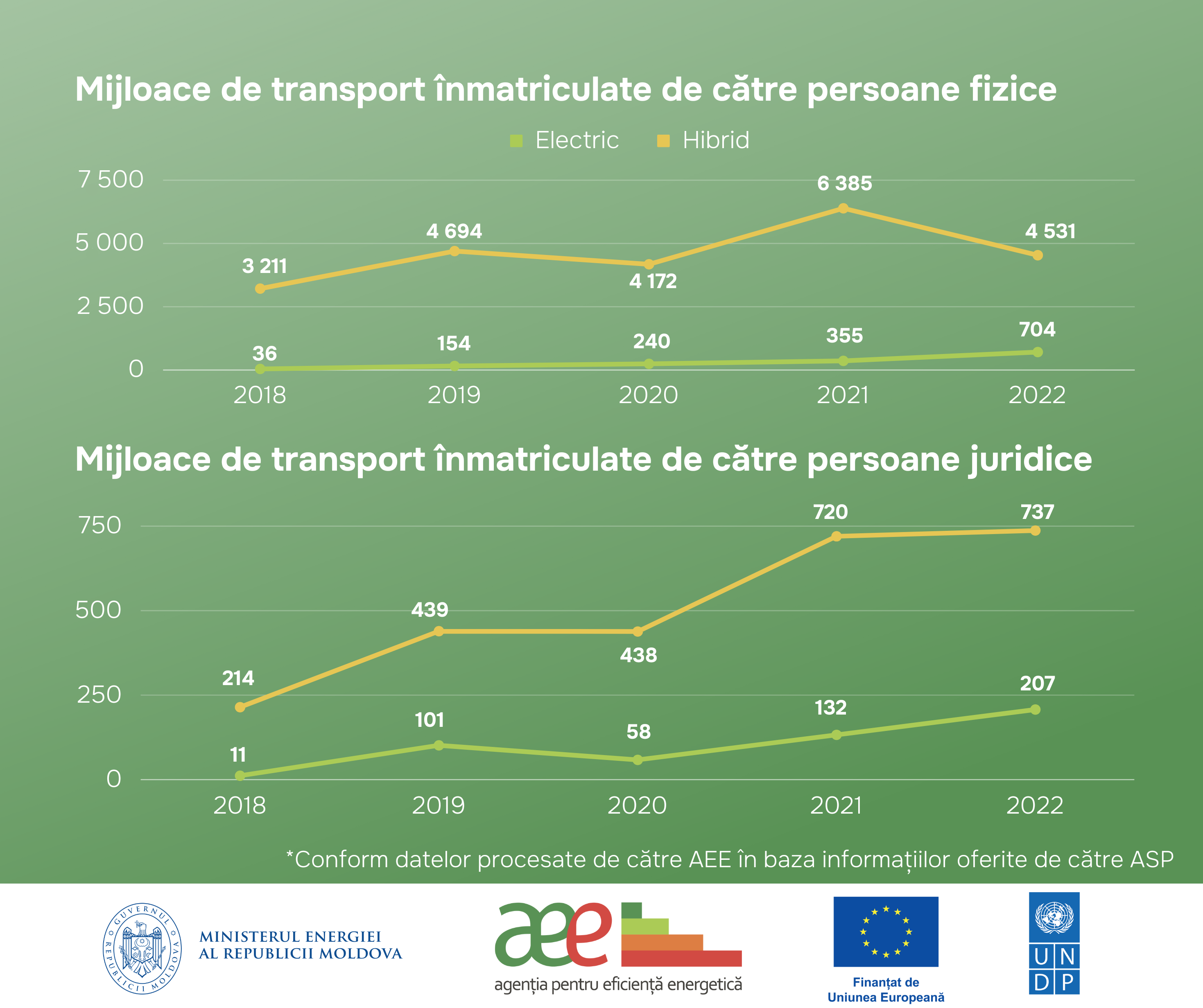 Evoluția transportului electric și cel hibrid în Republica Moldova poate fi consultată în cadrul seriei de infografice, elaborate de către Agenția pentru Eficiență Energetică în cadrul programului „Abordarea impactului crizei energetice în Moldova”, finanțat de UE și implementat de PNUD Moldova. Conținutul materialului aparține autorilor și nu reflectă în mod neapărat viziunea Uniunii Europene sau a PNUD.
