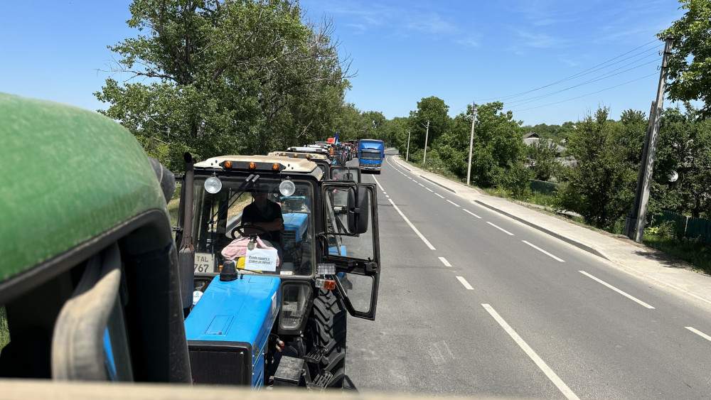 În jur de 70 de unități de tehnică agricolă au staționat, pe 8 iunie, pe marginea drumului, în preajma trecerii de frontieră de la Sculeni, în semn de protest față de situația creată pe piața cerealelor din țară.
