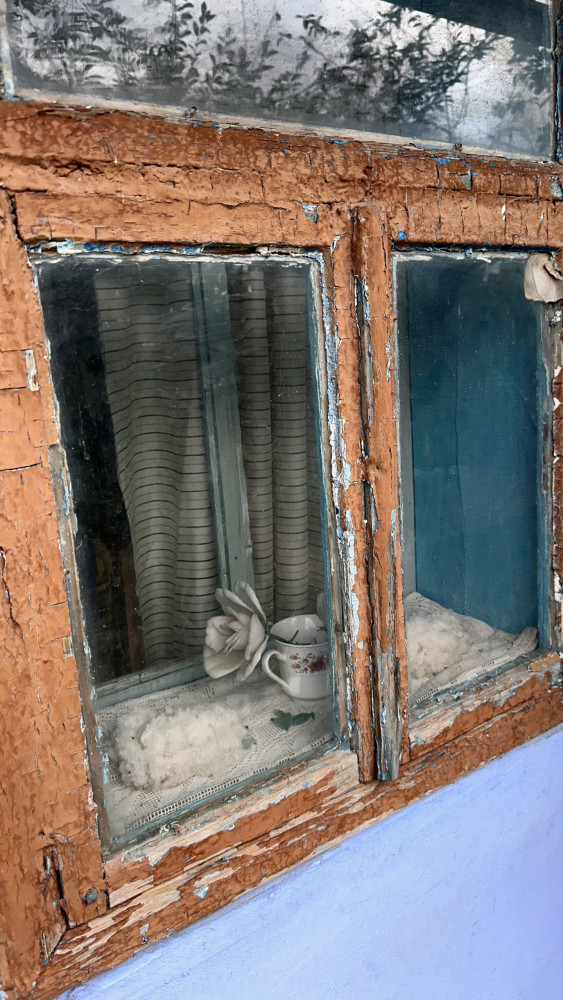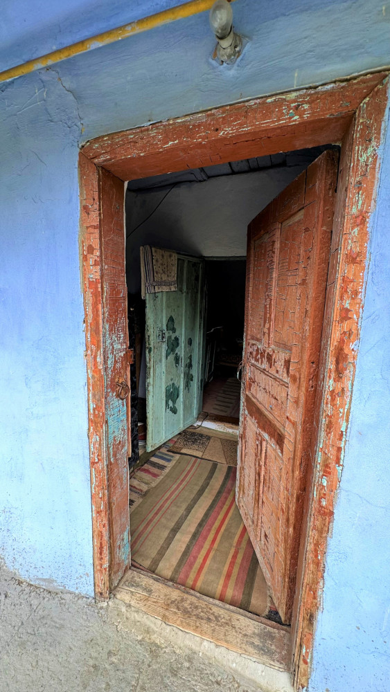 Ne invită în modesta și deosebita ei locuință. Ușa scorojită de timp și de vreme, scoate la iveală al doilea strat de vopsea cu care fusese acoperită cu mulți ani în urmă. Acum, aceasta a căpătat un amestec de culori, o combinație dintre „maro pierdut de soare”, presărată cu pete albăstrii.