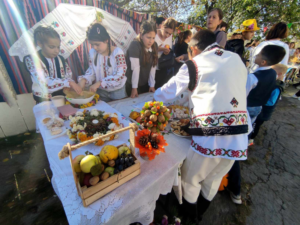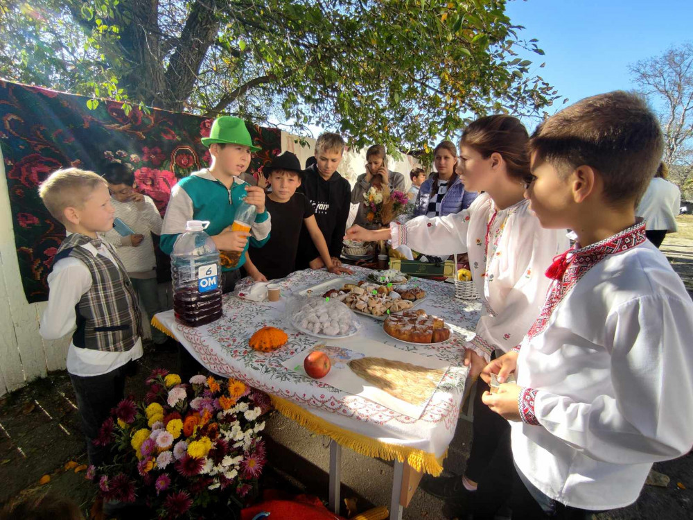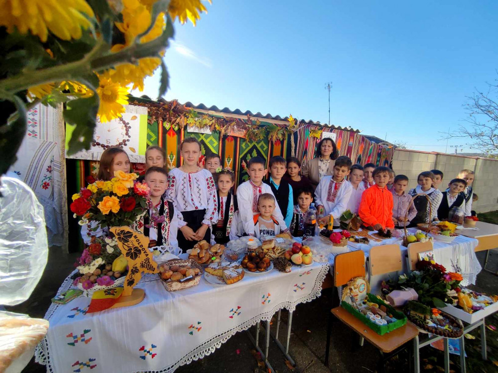 Decorațiuni de toamnă, realizate cu multă imaginație, produse de patiserie dintre cele mai diverse și apetisante, băuturi preparate acasă de mamele gospodine ale copiilor – toate astea au atras o mulțime de oameni în curtea Gimnaziului din satul Vălcineț.