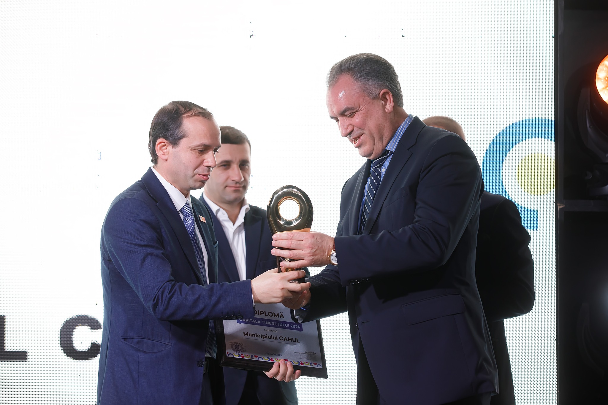 La finalul Galei Tineretului, a fost anunțat câștigătorul programului ,,Capitala Tineretului 2024” – municipiul Cahul. Astfel, în cadrul acestui eveniment, Vitalie Vrabie, primarul municipiului Ungheni a transmis mai departe trofeul ”Capitalei Tineretului”