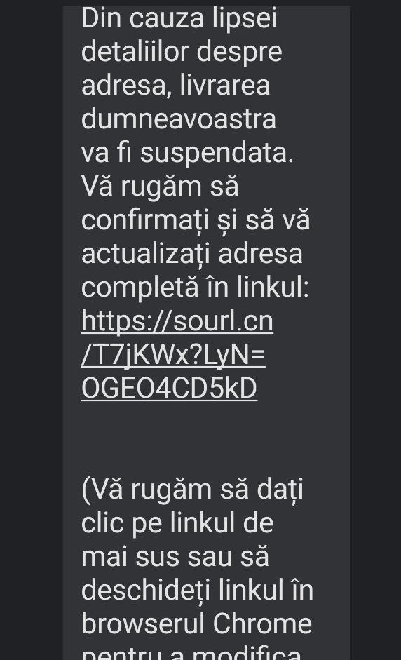 Coletul a ajuns la depozit, dar nu poate fi livrat! Acesta este un nou mesaj primit de moldoveni de la escrocii care vor să îi lase fără bani pe card. Mesajul SMS primit de cetățeni conține informații false despre necesitatea furnizării unor date suplimentare pentru a recepționa un presupus colet care urmează a fi livrat.