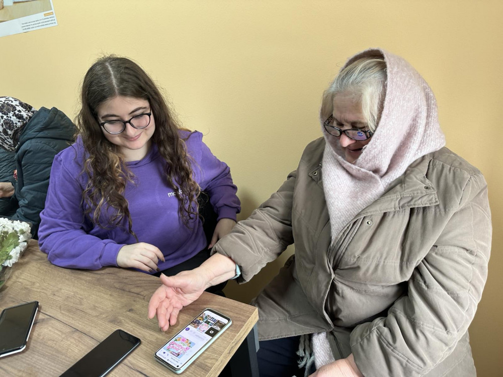 Centrul are două săli spațioase. În una dintre ele, cei cinci tineri voluntari, de trei ori pe săptămână, ghidează, explică și ajută vârstnicii să se descurce cu tot ceea ce ține de tehnologii informaționale, să navigheze pe rețele sociale sau să-și plătească facturile online, în cadrul unor ateliere de instruire. „Datorită faptului că noi avem o performanță mult mai bună în ceea ce privește utilizarea tehnologiilor, suntem un suport informațional pentru vârstnicii care nu se pricep aproape deloc să se utilizeze de telefoane. În același timp, am fost puși în situația de învăța pe alții practic de la zero pașii pe care trebuie să-i facă, ceea ce a fost un pic dificil pentru noi, dar în același timp plăcut, mai ales că am testat rolul de a preda, ceea ce nu e deloc simplu. Totuși, reușim să comunicăm foarte mult cu personele în etate, împărtășim unele puncte de vedere, dar și învățăm câte ceva unii de la alții”, spune Adelina Putina, una din voluntare.