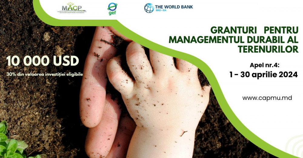 Potrivit sursei citate, Proiectul Agricultura Competitivă în Moldova (MAC-P) lansează cel de-al patrulea apel de depunere a dosarelor pentru Programul de granturi post-investiționale destinate managementului durabil al terenurilor. Fiecare beneficiar eligibil poate solicita un grant de până la 10.000 de dolari, care va compensa până la 30% din costul investiției eligibile. Acest sprijin financiar post-investițional are ca obiectiv nu doar facilitarea accesului la tehnologie avansată, ci și promovarea unui model agricol ce respectă principiile regenerării și conservării resurselor naturale.