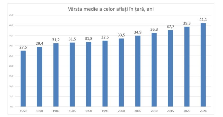 Populația Republicii Moldova îmbătrânește într-un ritm alarmant, potrivit datelor recente, care arată o creștere accelerată a vârstei medii în țară. În acest an, vârsta medie a populației a atins 41,5 ani, în creștere cu 0,6 ani față de anul precedent, când era de 40,5 ani, constată într-o analiză pe blogul său economistul Veaceslav Ioniță.