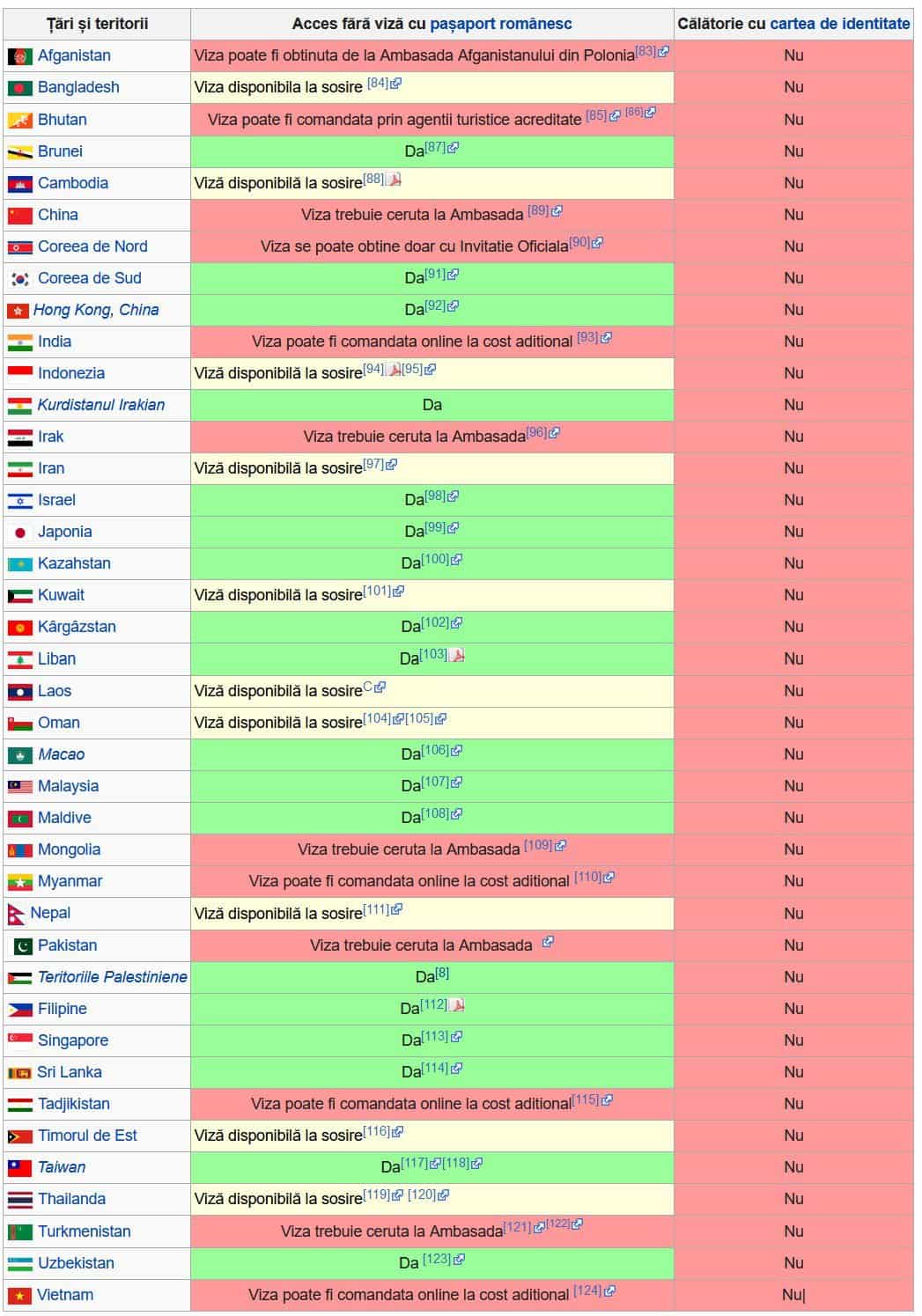 Dacă este necesară viză sau dacă titularul paşaportului trebuie să obţină o e-viză aprobată de guvern înainte de plecare, atunci nu se acordă puncte pentru această destinaţie. Dar, România are unul dintre cele mai puternice paşapoarte din lume, clasat pe locul 14.