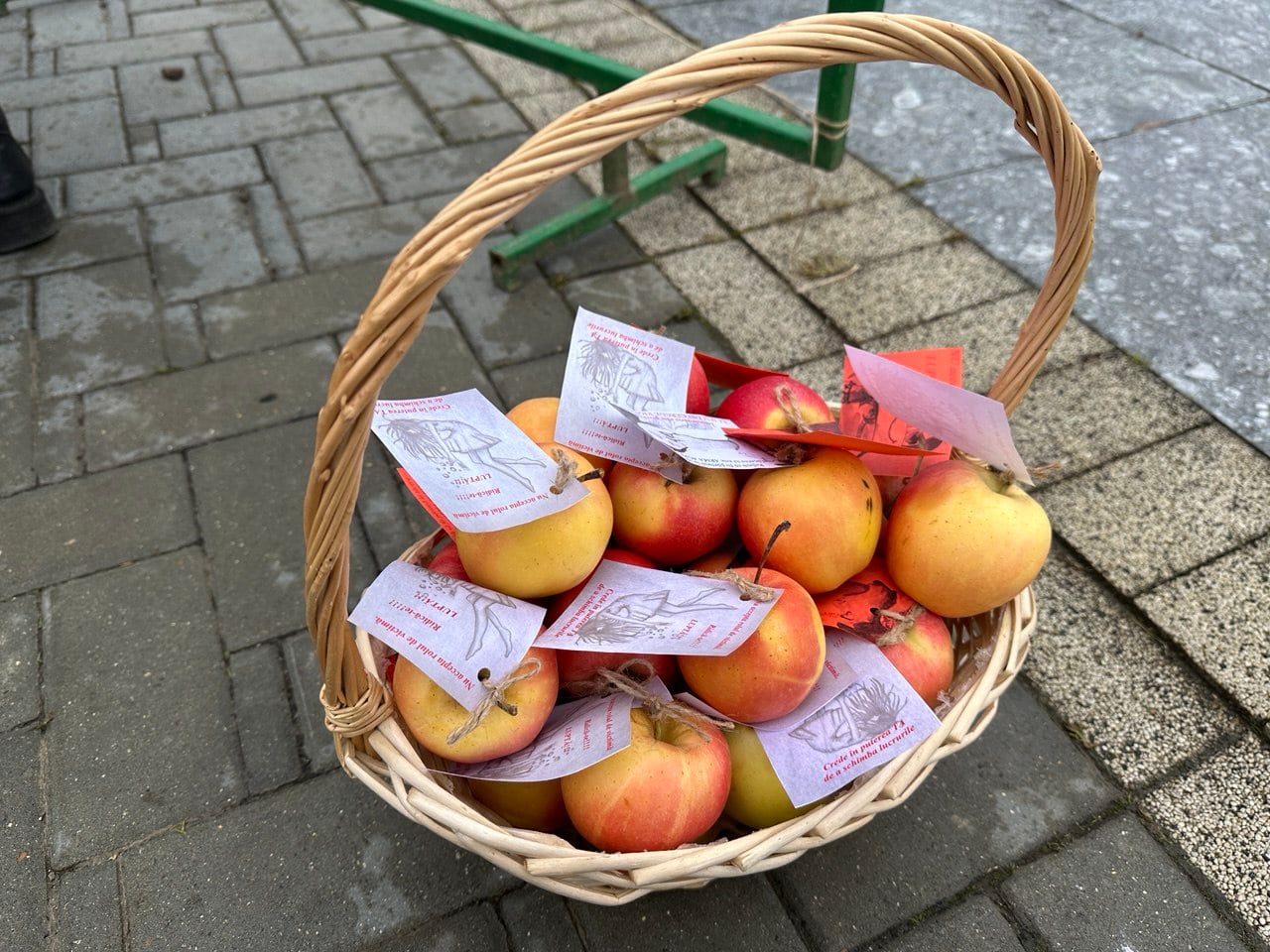 Pe lângă flashmob, trecătorilor li s-au oferit mere cu mesaje inscripționate pentru a întări mesajul campaniei.