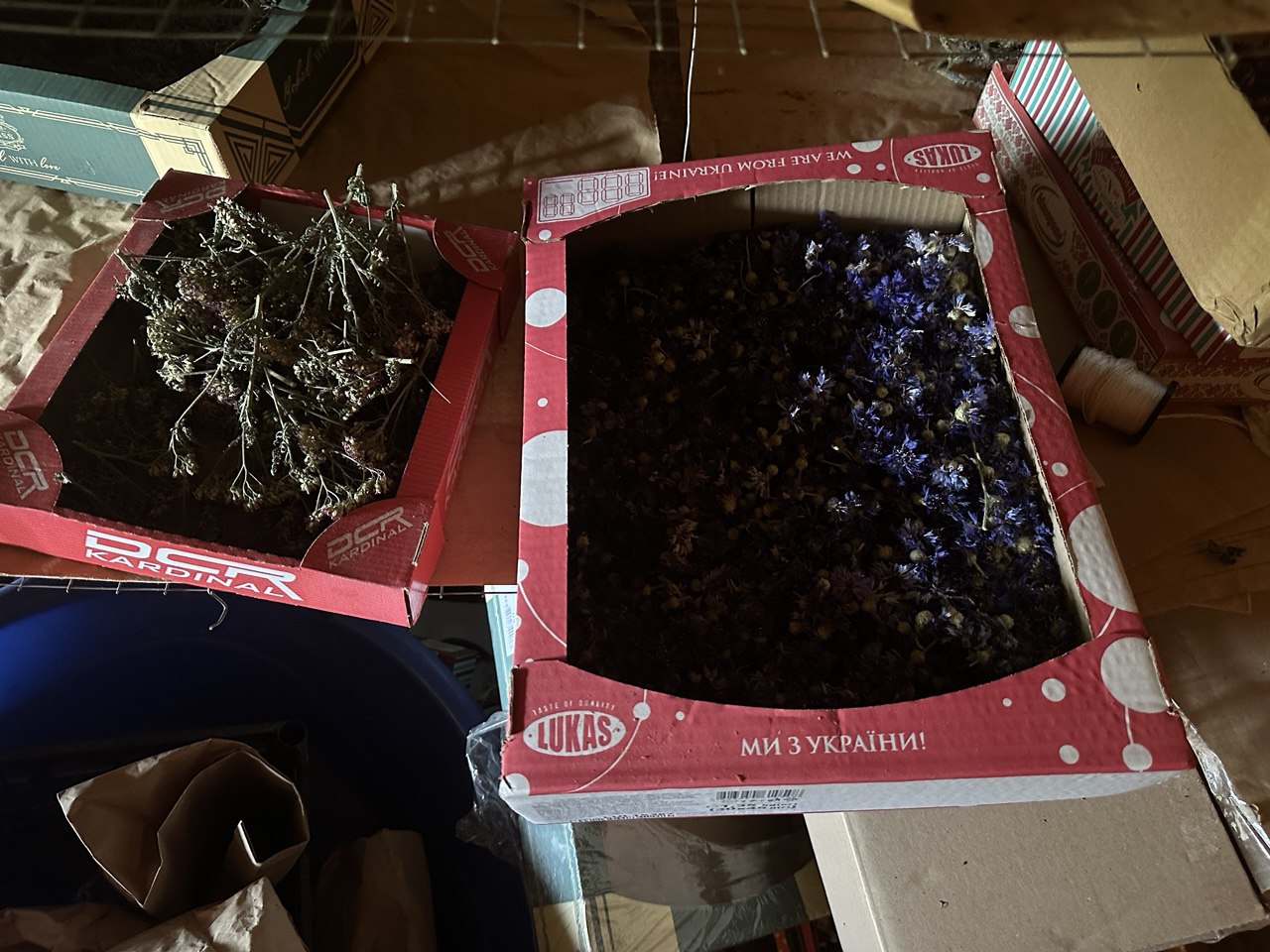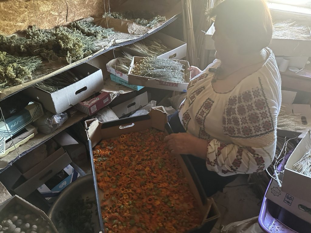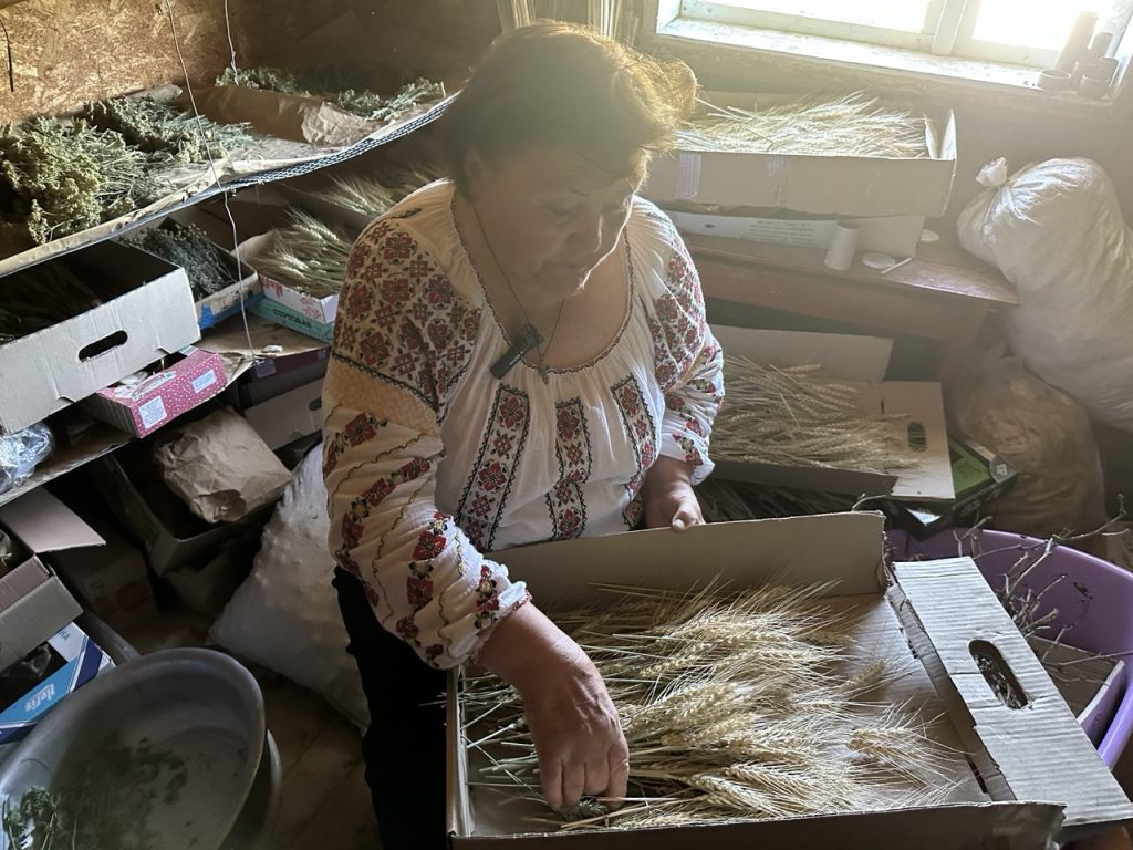 La ea în grădină, natura vorbește singură. Vetricea, cunoscută ca „poarta raiului”, crește chiar lângă poartă, ca o invitație spre lumea plantelor. Urmează levănțica, roinița, cimbrul, oregano, angelica, calendula sau ivanceaiul care a fost adus de copii din Marea Britanie. În timp ce treceam printre straturile de ierburi, gazda îmi povestea despre beneficiile fiecărei plante în parte. Apoi m-a invitat în pod, locul unde usucă plantele culese. Acolo, lumina intră printr-un geam orientat spre soare, luminând zeci de cutii și pungi de hârtie cu plante atent așezate.