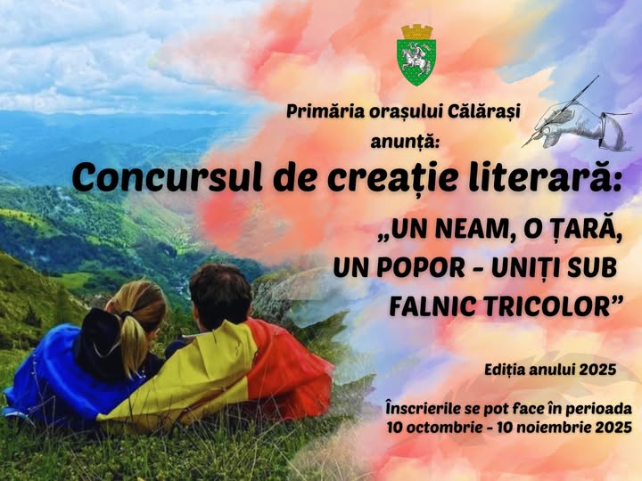 Primăria orașului Călărași dă start celei de-a III-a ediții a Concursului de creație literar-artistică „Un neam, o țară, un popor – uniți sub falnic tricolor”, un eveniment devenit deja tradiție, menit să adune laolaltă iubitorii de cultură, poezie și spirit românesc.