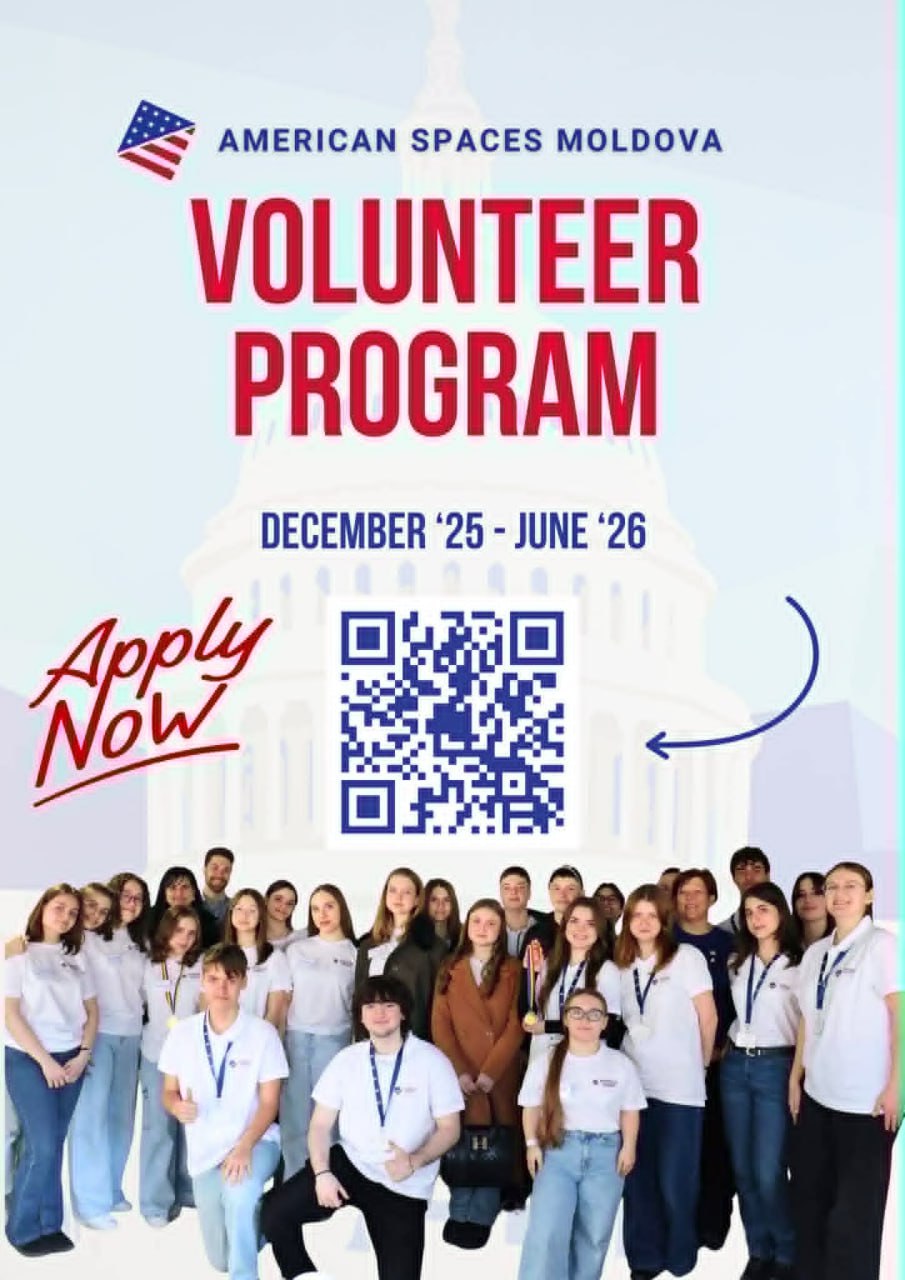 American Spaces Moldova deschide înscrierile pentru Programul de Voluntariat – un proiect coordonat al Secției de Diplomație Publică a Ambasadei SUA, dedicată tinerilor cu vârsta între 14 și 21 de ani. Programul, lansat în 2015, a format deja peste 400 de voluntari, contribuind la dezvoltarea unei noi generații de tineri activi civic.