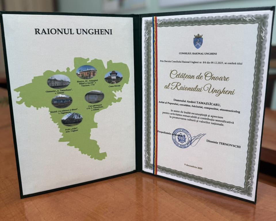 Andrei Tamazlîcaru, artist al poporului, originar din satul Grăseni, a devenit primul cetățean de onoare al raionului Ungheni.