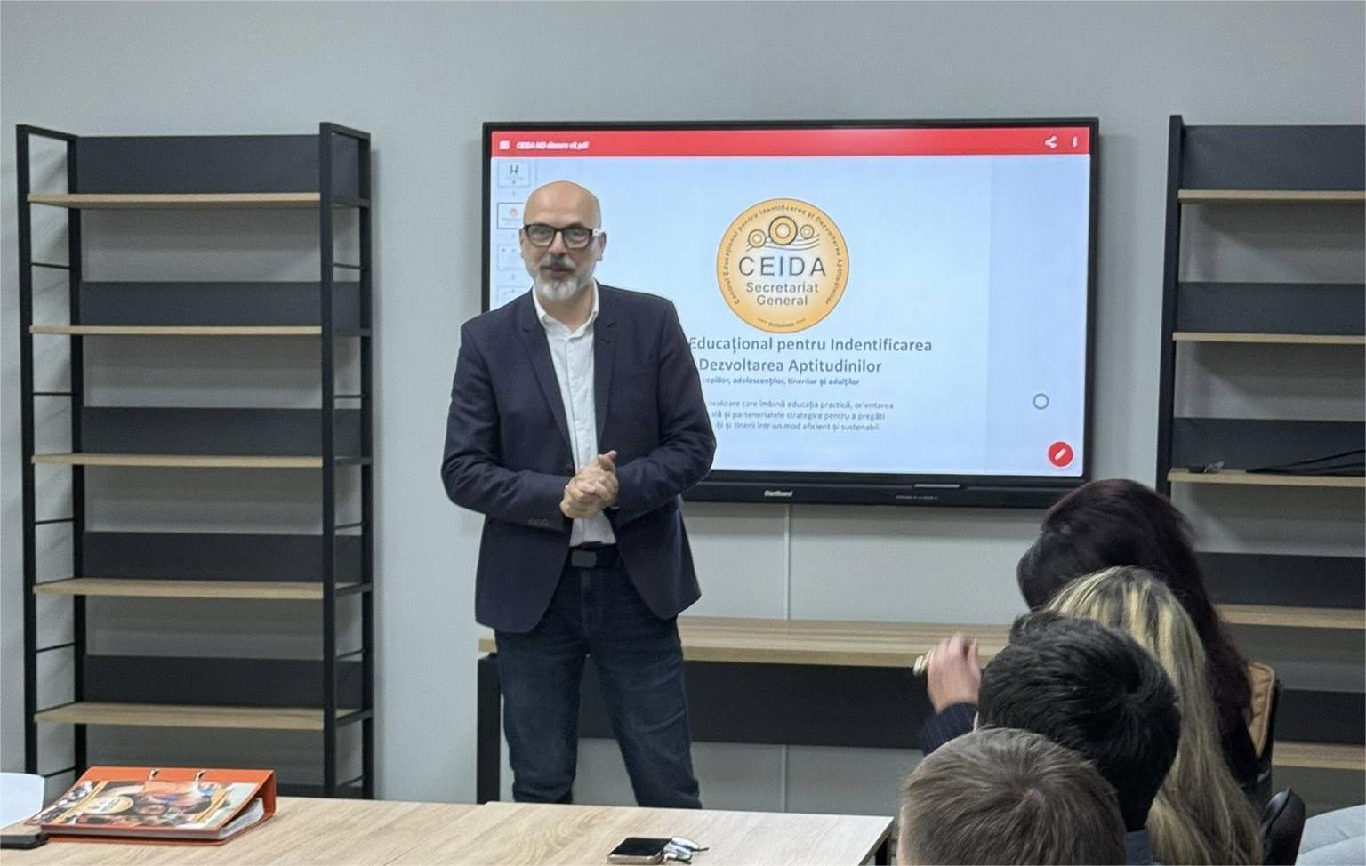 CEIDA – Centrul Educațional pentru Identificarea și Dezvoltarea Aptitudinilor – este un concept inovator de formare aplicată, dezvoltat în România și fundamentat pe valori precum responsabilitatea, performanța și orientarea spre carieră. Acest model educațional se aliniază necesităților pieței muncii din Republica Moldova, unde companiile se confruntă tot mai des cu lipsa forței de muncă pregătite. „Rolul nostru este să dezvoltăm regiunea Ungheni și să găsim soluții noi la provocările existente. Ne confruntăm cu depopularea țării, cred că este cea mai mare problemă la moment. Pierdem oameni competenți, iar acest lucru se resimte în toate domeniile. Ideea creării unui astfel de centru la Ungheni mi s-a părut foarte interesantă și cred că poate contribui la diminuarea fenomenului, ținând oamenii acasă, aproape de comunitate. Viziunea mea este ca Ungheniul să devină, în câțiva ani, cel mai puternic pol de creștere din țară”, a menționat Dionisie Ternovschi, președintele raionului Ungheni.