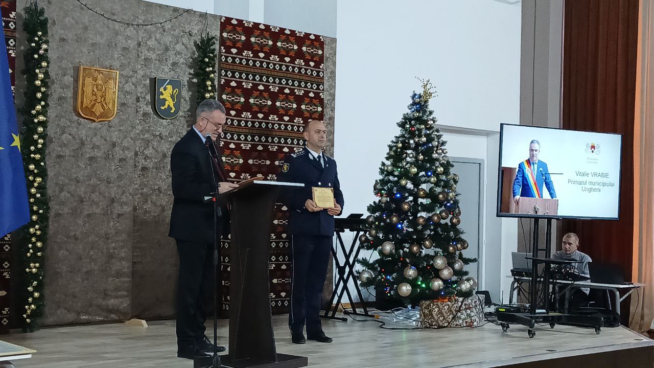 Și primarul municipiului Ungheni, Vitalie Vrabie, la rându-i, a evidențiat rolul important al poliției în viața comunității: „35 de ani poate nu este o cifră mare pentru o instituție, dar activitatea dumneavoastră ar putea umple volume întregi. Un lucru esențial este că ați rămas conectați la oameni. În ultimii ani sunteți mai bine dotați, mai bine instruiți și selectați cu mare atenție. Primăria a fost și va rămâne alături de poliție, contribuind la în continuare la modernizarea acesteia”.