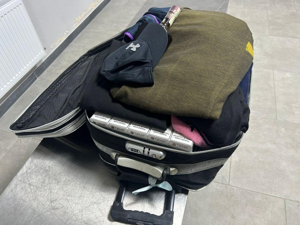 În urma verificărilor detaliate, au fost depistate 300 de pachete de țigări fără timbru de acciz, camuflate într-o valiză ce aparținea unui pasager – cetățean român, în vârstă de 54 de ani.