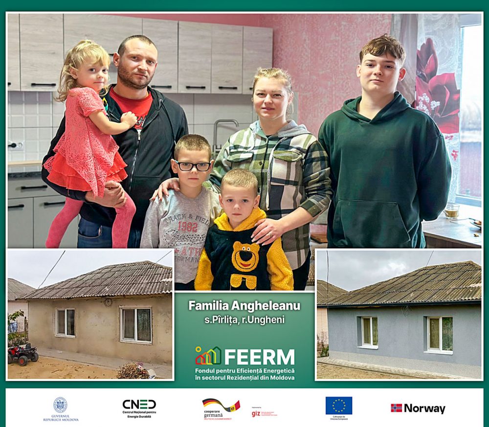 Familia Angheleanu din satul Pîrlița, raionul Ungheni, care crește cinci copii, a reușit să reducă semnificativ cheltuielile pentru încălzire și să asigure un confort termic stabil în locuință, după intervențiile realizate prin Programul de stat Fondul pentru Eficiență Energetică în sectorul Rezidențial (FEERM), cu sprijinul Uniunii Europene și al Guvernului Germaniei, scrie cned.gov.md.