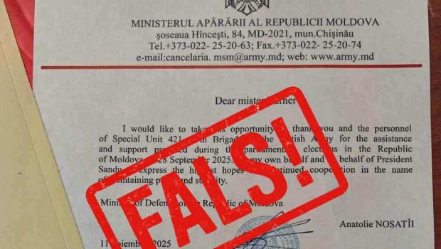 O scrisoare de mulțumire falsă, atribuită ministrului Apărării al Republicii Moldova, Anatolie Nosatîi, a fost distribuită pe unele canale de Telegram și promovată ulterior…
